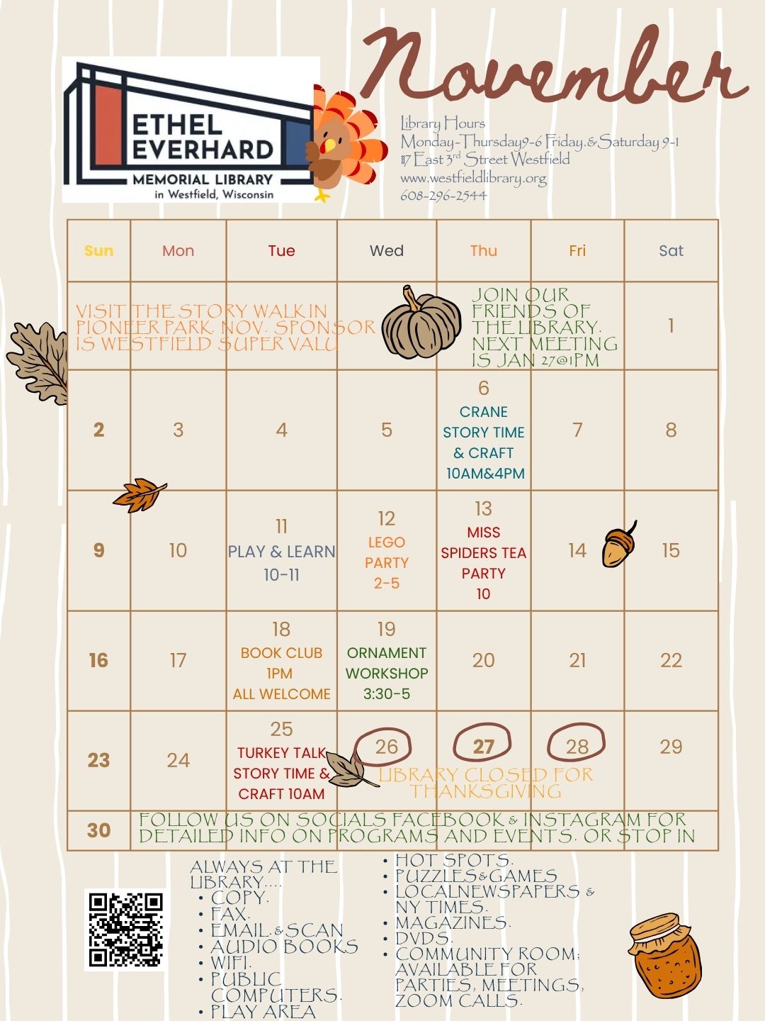 The Ethel Everhard Memorial Library is a public library located in the Village of Westfield, Wisconsin. The library serves village and surrounding rural residents.